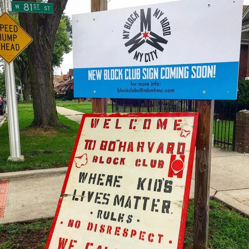 A brand new hand painted block club sign (below) that displays your block’s values.